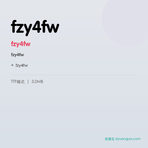 fzy4fw是一款优秀的设计字体。fzy4fw,笔画风格独特,适合多种设计场景使用。