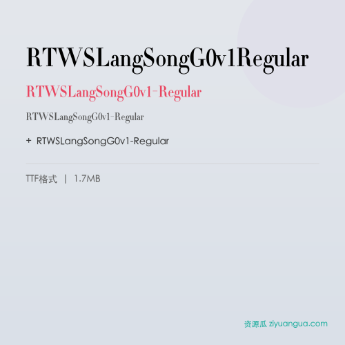 RTWSLangSongG0v1-Regular是一款优秀的设计字体。RTWSLangSongG0v1-Regular,笔画风格独特,适合多种设计场景使用。