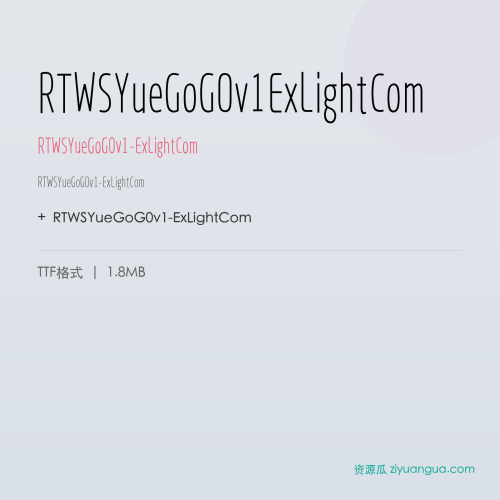 RTWSYueGoG0v1-ExLightCom是一款优秀的设计字体。RTWSYueGoG0v1-ExLightCom,笔画风格独特,适合多种设计场景使用。