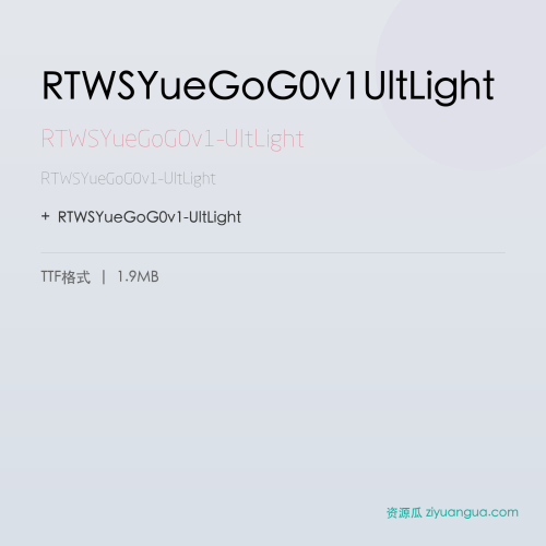 RTWSYueGoG0v1-UltLight是一款优秀的设计字体。RTWSYueGoG0v1-UltLight,笔画风格独特,适合多种设计场景使用。