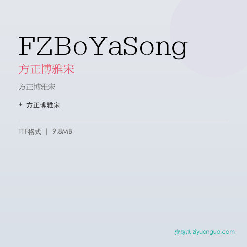 方正博雅宋是一款宋体风格古朴典雅的中文字体。该字体在保持良好可读性的同时,兼具设计美感,是设计师字库中值得收藏的精品。