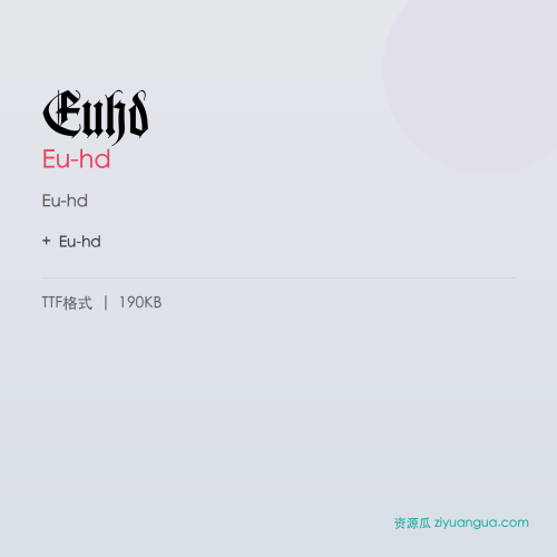 Eu-hd是一款风格独特,辨识度高的中文字体。该字体在保持良好可读性的同时,兼具设计美感,是设计师字库中值得收藏的精品。