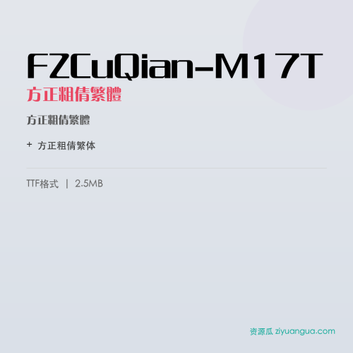 方正粗倩繁体是一款笔画粗壮有力,繁体字库的中文字体。该字体在保持良好可读性的同时,兼具设计美感,是设计师字库中值得收藏的精品。