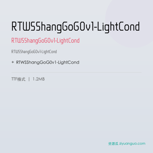RTWSShangGoG0v1-LightCond是一款线条纤细优雅的中文字体。该字体在保持良好可读性的同时,兼具设计美感,是设计师字库中值得收藏的精品。