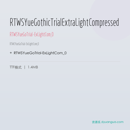 RTWSYueGoTrial-ExLightCom_0是一款线条纤细优雅,圆润可爱的中文字体。该字体在保持良好可读性的同时,兼具设计美感,是设计师字库中值得收藏的精品。
