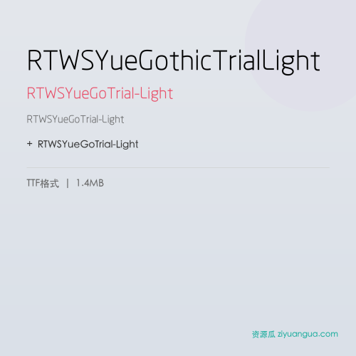 RTWSYueGoTrial-Light是一款线条纤细优雅,圆润可爱的中文字体。该字体在保持良好可读性的同时,兼具设计美感,是设计师字库中值得收藏的精品。