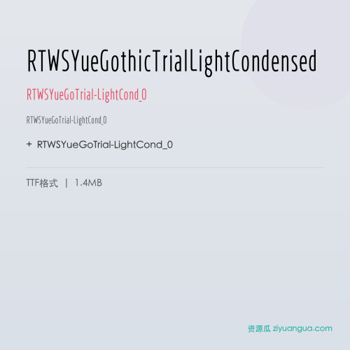 RTWSYueGoTrial-LightCond_0是一款线条纤细优雅,圆润可爱的中文字体。该字体在保持良好可读性的同时,兼具设计美感,是设计师字库中值得收藏的精品。