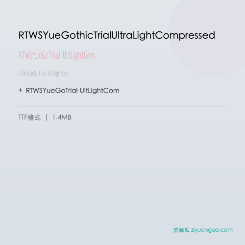 RTWSYueGoTrial-UltLightCom是一款线条纤细优雅,圆润可爱的中文字体。该字体在保持良好可读性的同时,兼具设计美感,是设计师字库中值得收藏的精品。
