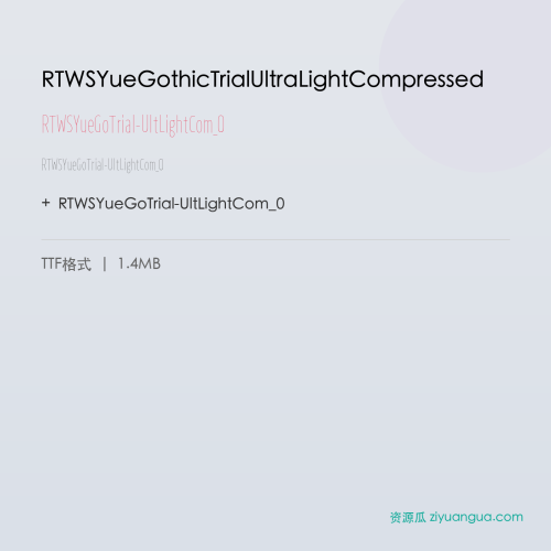 RTWSYueGoTrial-UltLightCom_0是一款线条纤细优雅,圆润可爱的中文字体。该字体在保持良好可读性的同时,兼具设计美感,是设计师字库中值得收藏的精品。