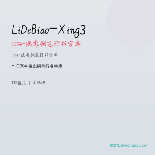 C304-德彪钢笔行书字库是一款手写风格自然流畅的中文字体。该字体在保持良好可读性的同时,兼具设计美感,是设计师字库中值得收藏的精品。