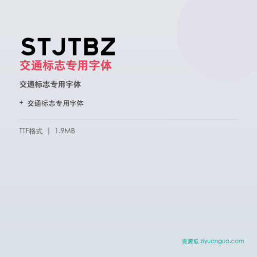 交通标志专用字体是一款风格独特,辨识度高的中文字体。该字体在保持良好可读性的同时,兼具设计美感,是设计师字库中值得收藏的精品。