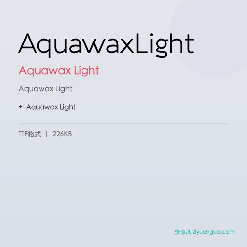 Aquawax Light是一款线条纤细优雅的中文字体。该字体在保持良好可读性的同时,兼具设计美感,是设计师字库中值得收藏的精品。
