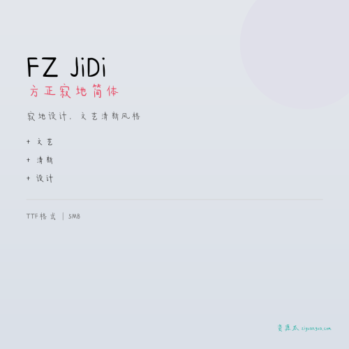 方正寂地简体是由寂地设计师创作的一款文艺清新风格字体,字体线条流畅自然,充满艺术气息。