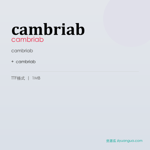 cambriab是一款优秀的设计字体。cambriab,笔画风格独特,适合多种设计场景使用。