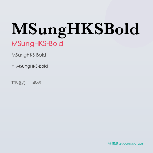 MSungHKS-Bold是一款优秀的设计字体。MSungHKS-Bold,笔画风格独特,适合多种设计场景使用。