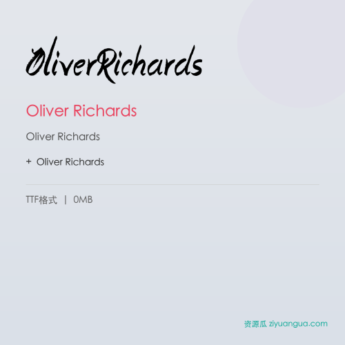 Oliver Richards是一款优秀的设计字体。Oliver Richards,笔画风格独特,适合多种设计场景使用。