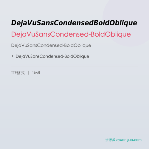 DejaVuSansCondensed-BoldOblique是一款优秀的设计字体。DejaVuSansCondensed-BoldOblique,笔画风格独特,适合多种设计场景使用。