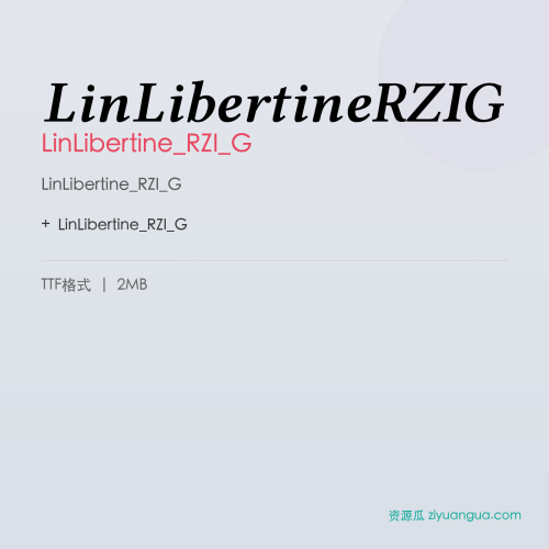 LinLibertine_RZI_G是一款优秀的设计字体。LinLibertine_RZI_G,笔画风格独特,适合多种设计场景使用。