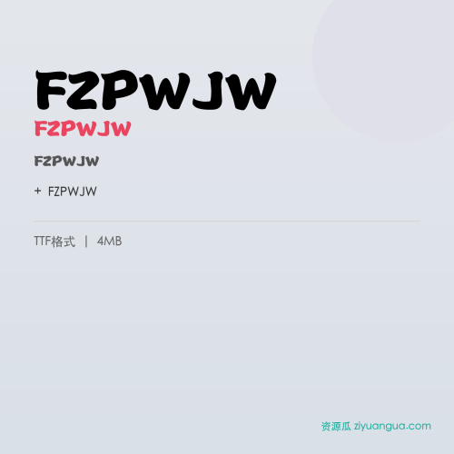 FZPWJW是一款优秀的设计字体。FZPWJW,笔画风格独特,适合多种设计场景使用。
