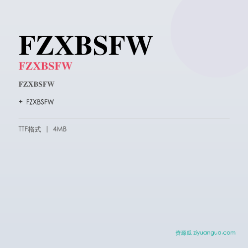 FZXBSFW是一款优秀的设计字体。FZXBSFW,笔画风格独特,适合多种设计场景使用。