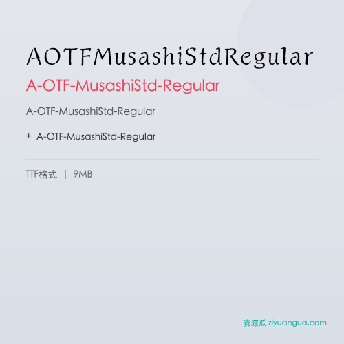 A-OTF-MusashiStd-Regular是一款优秀的设计字体。A-OTF-MusashiStd-Regular,笔画风格独特,适合多种设计场景使用。