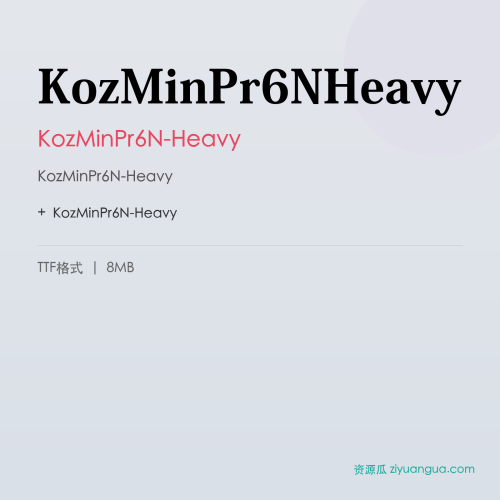KozMinPr6N-Heavy是一款优秀的设计字体。KozMinPr6N-Heavy,笔画风格独特,适合多种设计场景使用。