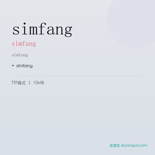 simfang是一款优秀的设计字体。simfang,笔画风格独特,适合多种设计场景使用。