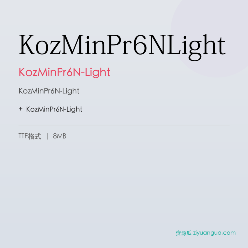 KozMinPr6N-Light是一款优秀的设计字体。KozMinPr6N-Light,笔画风格独特,适合多种设计场景使用。