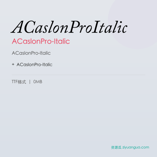ACaslonPro-Italic是一款优秀的设计字体。ACaslonPro-Italic,笔画风格独特,适合多种设计场景使用。