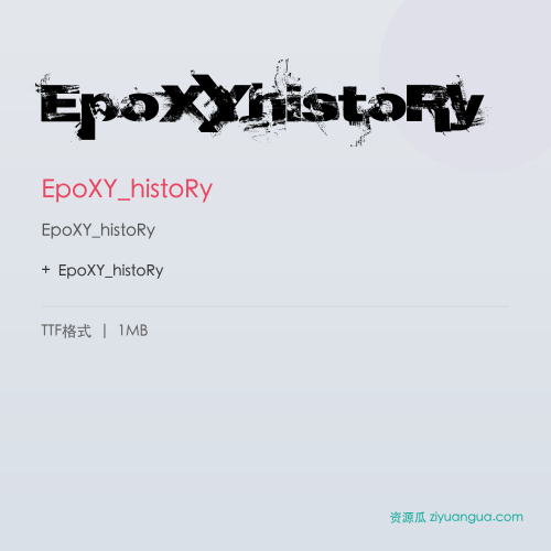 EpoXY_histoRy是一款优秀的设计字体。EpoXY_histoRy,笔画风格独特,适合多种设计场景使用。