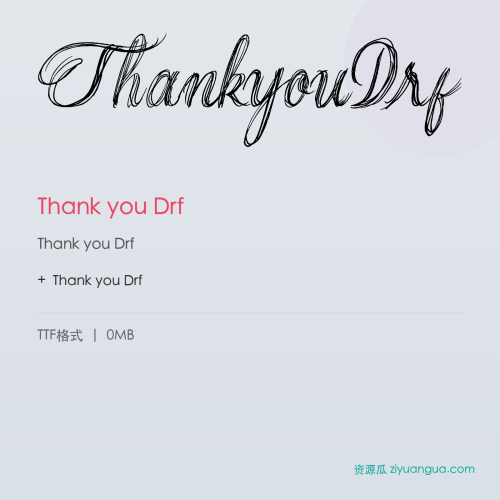 Thank you Drf是一款优秀的设计字体。Thank you Drf,笔画风格独特,适合多种设计场景使用。