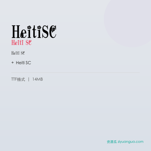 Heiti SC是一款优秀的设计字体。Heiti SC,笔画风格独特,适合多种设计场景使用。