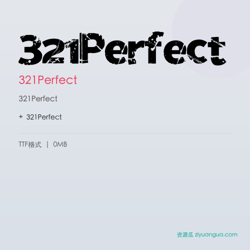 321Perfect是一款优秀的设计字体。321Perfect,笔画风格独特,适合多种设计场景使用。