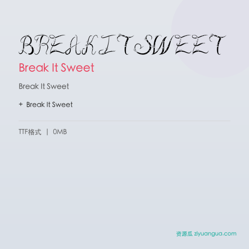 Break It Sweet是一款优秀的设计字体。Break It Sweet,笔画风格独特,适合多种设计场景使用。