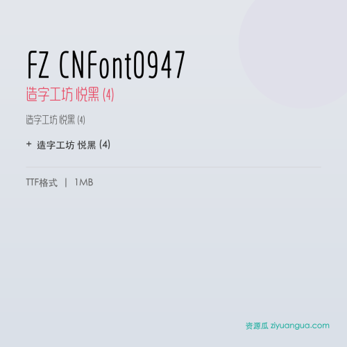 造字工坊 悦黑 (4)是一款优秀的设计字体。造字工坊 悦黑 (4),笔画风格独特,适合多种设计场景使用。