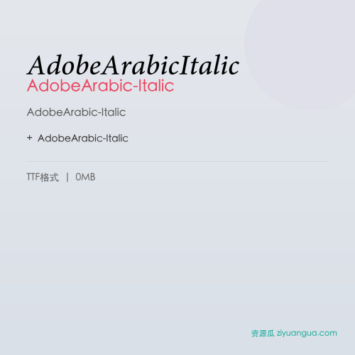 AdobeArabic-Italic是一款优秀的设计字体。AdobeArabic-Italic,笔画风格独特,适合多种设计场景使用。