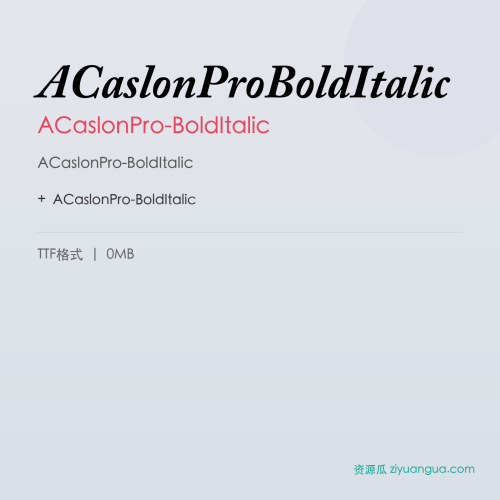 ACaslonPro-BoldItalic是一款优秀的设计字体。ACaslonPro-BoldItalic,笔画风格独特,适合多种设计场景使用。