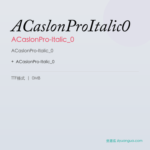 ACaslonPro-Italic_0是一款优秀的设计字体。ACaslonPro-Italic_0,笔画风格独特,适合多种设计场景使用。