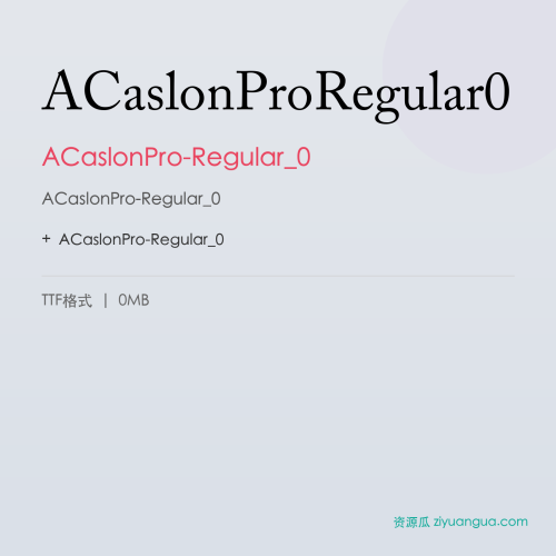 ACaslonPro-Regular_0是一款优秀的设计字体。ACaslonPro-Regular_0,笔画风格独特,适合多种设计场景使用。