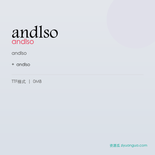 andlso是一款优秀的设计字体。andlso,笔画风格独特,适合多种设计场景使用。