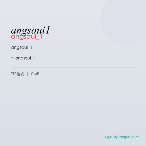angsaui_1是一款优秀的设计字体。angsaui_1,笔画风格独特,适合多种设计场景使用。
