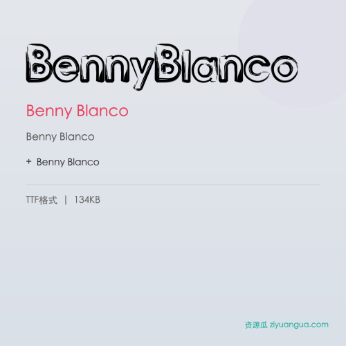 Benny Blanco是一款优秀的设计字体。Benny Blanco,笔画风格独特,适合多种设计场景使用。